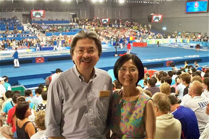 曾俊華與太太2008年在北京觀看奧運劍擊賽事。資料圖片