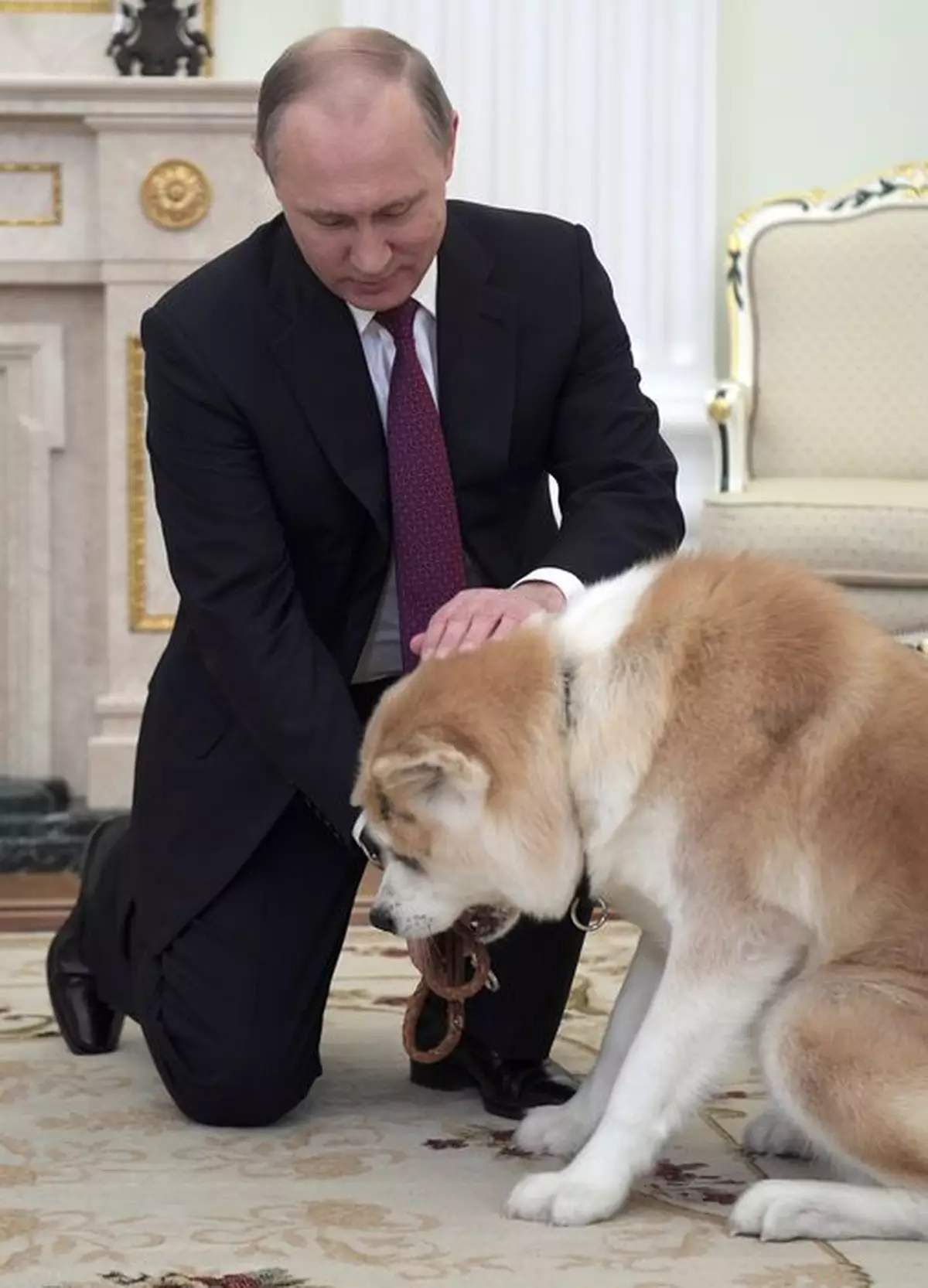 普京明日起將到日本訪問兩日,他周二在克里姆林宮接受日本電視台和《讀賣新聞》的記者採訪,他應記者要求帶同4年前由日本送贈的雌性秋田犬「夢」受訪。不知是否知道要出鏡受訪,「百厭」的秋田犬「夢」在現場閃光燈的照射下表現相當興奮,開始狂吠,而且不斷逼近在場的日本記者。