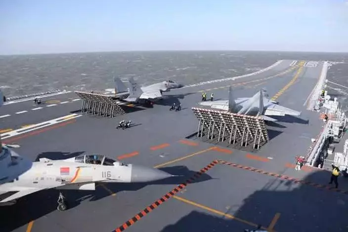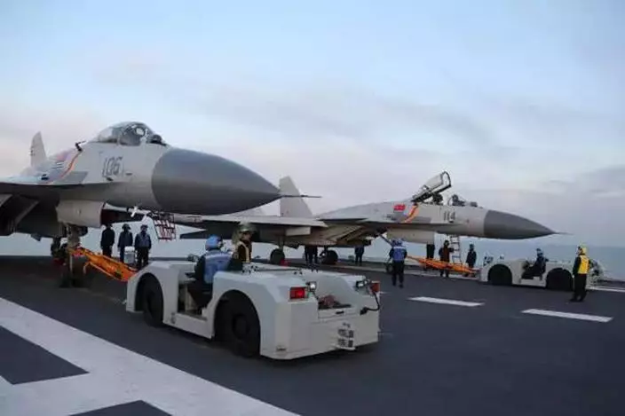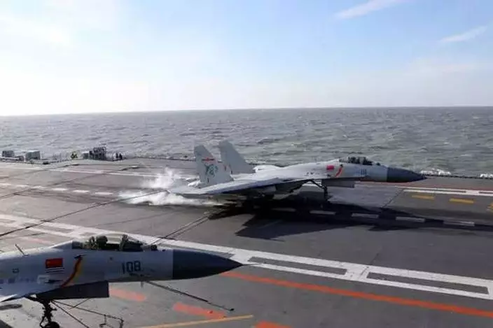 中國海軍日前在渤海海域展開遼寧號航母編隊實彈演習,殲-15艦載機開火演練的畫面首度曝光。