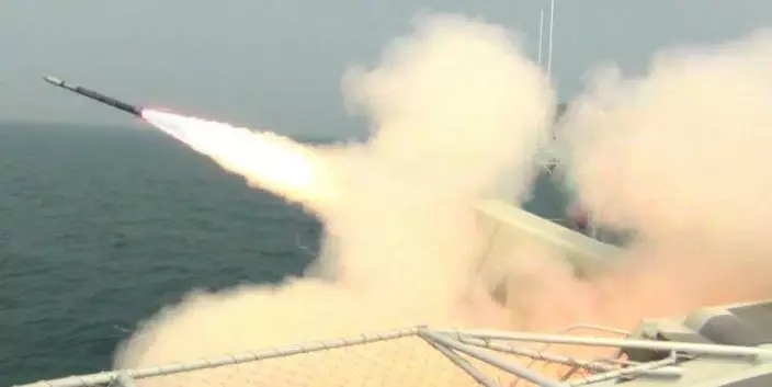 遼寧艦發射艦空導彈,攔截來襲目標。(網上圖片)