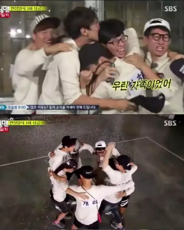 已經走過六個年頭的《RM》吸引海內外無數粉絲每星期守候,七人在一起的畫面只能成為觀眾的美好回憶。去年其中一集,製作組要求一名成員跳繩跳出的數目跟其他成員選擇的數字一樣,大家才可以放工。最終成員們選擇劉在錫跳繩,當他完全不知正確數字的情況下,跳出成員選出的數字「7」,坐在梳化的成員開心得跳了起來互相擁抱::「太感動了!」池石鎮感性說:「我們是一家人!」「周一情侶」宋智孝和Gary也不禁流淚。