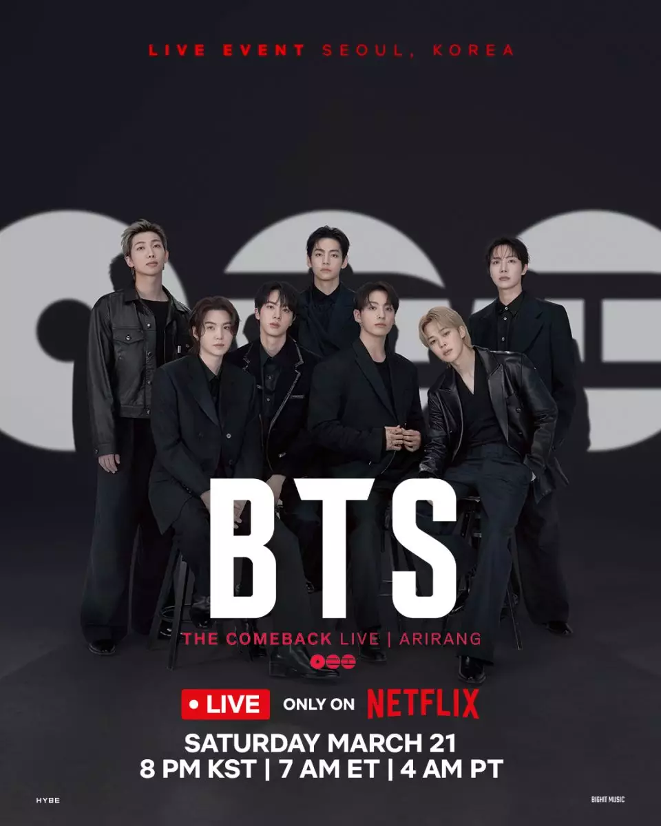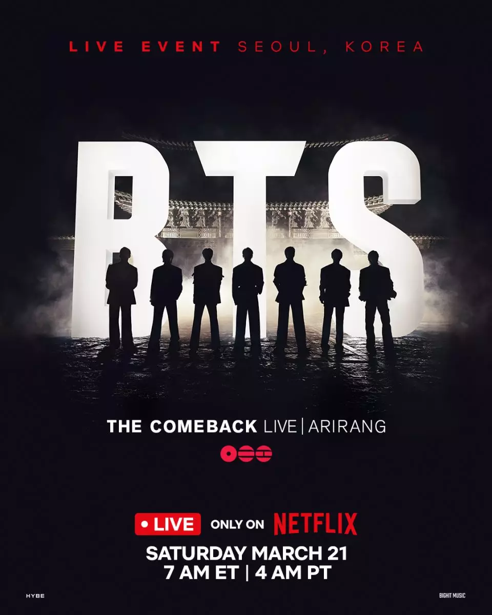 BTS將於3月21晚在首爾光化門廣場舉辦免費大型回歸演唱會《BTS THE COMEBACK LIVE | ARIRANG》。BTS官網圖片