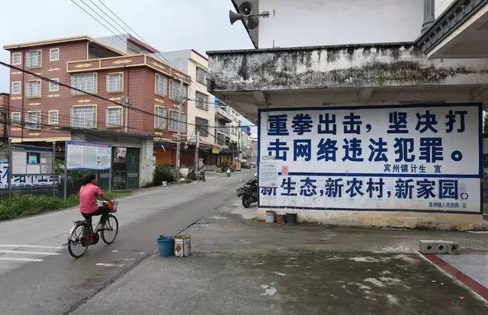 廣西賓陽街頭隨處可見打擊「電騙黨」的標語
