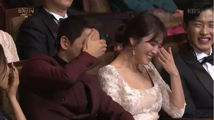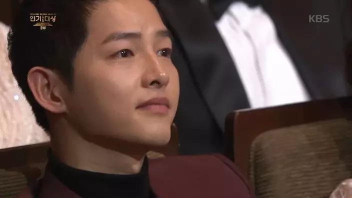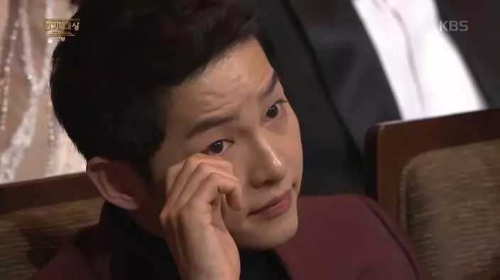其中提到師兄宋仲基時更表示「在拍攝《雲畫的月光》時,感受到自己有很多不足之處,謝謝當時總是不吝給我建言的仲基哥。」當時畫面帶到台下,想不到宋仲基竟比他哭得更厲害。後來宋仲基發現鏡頭對著自己,才不好意思地別過頭、遮住眼睛,連主持人都不禁笑問「宋仲基怎麼哭成這樣?」坐在一旁的宋慧喬也跟著大笑,氣氛溫馨又感人。