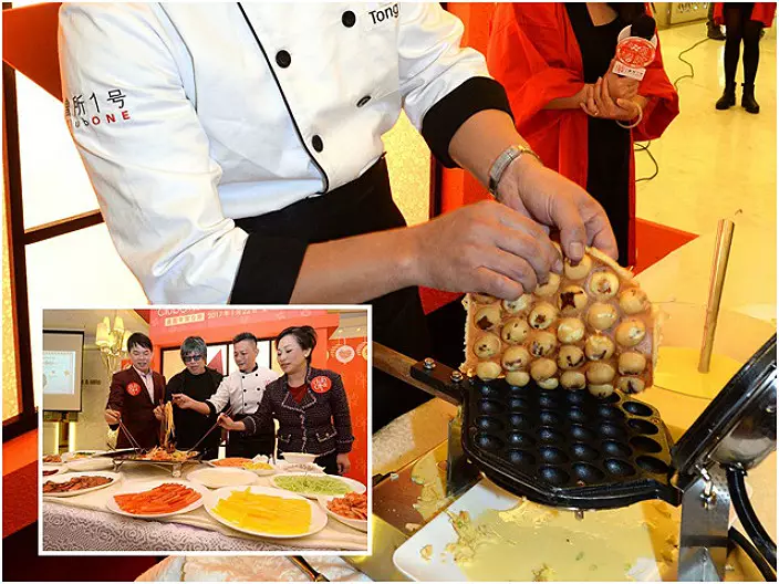 農曆新年將至,維園年宵市場本月22至27日舉行,連續4年投得維園年宵最大熟食攤位的婚宴集團ClubONE,今年推出「肥燶叉燒雞蛋仔」,雞蛋仔內含叉燒粒,每底售35元;另外,「廚魔」梁經倫與謝霆鋒合作推出「鋒·魔·愛心撈」,內含鵝肝、雞冠等20款材料,每份售68元,收益作慈善用途。