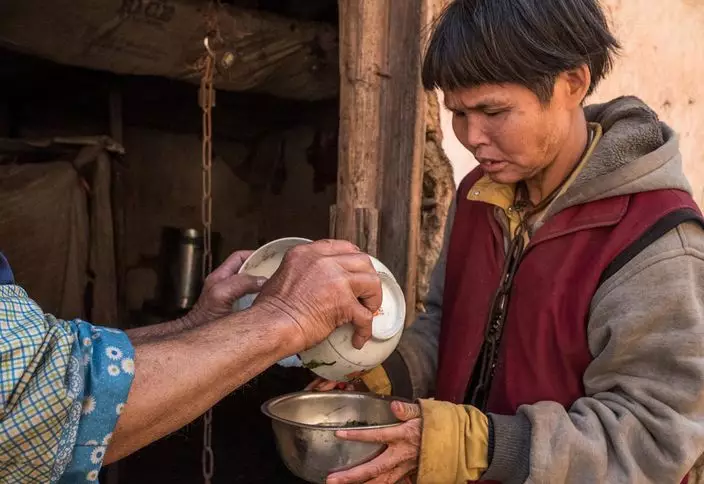劉建龍說,三十年前太太未嫁給自己時不慎受傷跌到頭部患精神病,最初病情不太嚴重,然而結婚後病情惡化,精神病越來越厲害,二十多年前自己去田裡工作, 留下太太和三歲的兒子,但二十多年前太太病發未有好好照顧年幼兒子,兒子不慎跳進裝着滾水的大鍋身亡,自此就無奈要用鐵鏈將太太鎖住,因為她發病時會亂砸東西、四處亂跑,以前用繩子拴著被她跑掉好幾次,險些出意外。