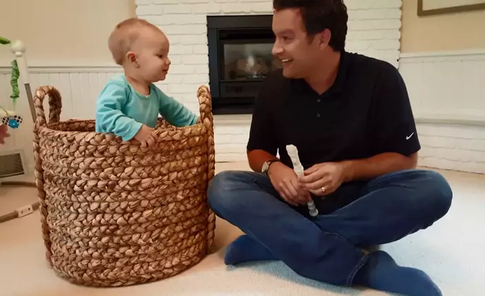 印度有種叫「弄蛇術」的表演,通過吹奏樂器引誘蛇從竹籠裡探出,十分刺激嚇人。美國有位爸爸照版煮碗,吹奏長笛引誘籠子裡的東東走出來。不過,吹出來的是一個超cute的寶寶!