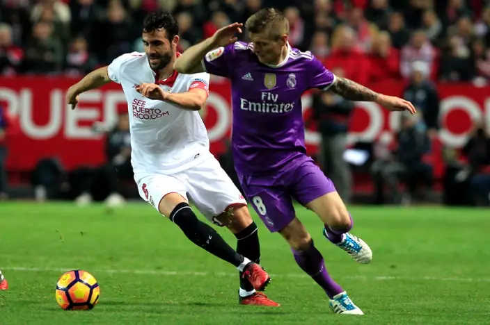 皇家馬德里在下半場的67分鐘,憑基斯坦奴朗拿度射入12碼先開紀錄,不過,優勢卻在最後5分鐘內化為烏有,沙治奧拉莫斯85分鐘想頭槌解圍卻擺烏龍,讓主隊追平。補時階段,由國際米蘭外借至西維爾,後備上陣的祖維迪,遠射建功,協助西維爾反勝2:1,目前18戰得39分排次席,較榜首少踢一場的皇家馬德里少一分。