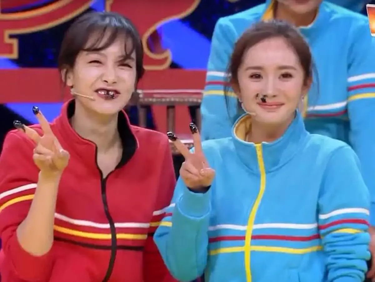 此外,宋茜與楊冪於另一環節要被對方弄到變花臉貓,二人起初表現得「相敬如賓」,但當柔軟度一流的宋茜成功將「墨汁」抹在楊冪臉上後,楊冪竟不服輸地進攻宋茜俏臉,令二人齊齊變花臉貓,連牙齒都沾上墨汁的宋茜,更被取笑是「冇牙婆」,十分搞笑。
