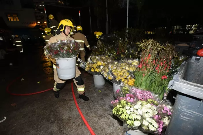 現場是牛池灣村榮池徑,清晨六時許,一批空發泡膠箱突然著火焚燒,乘風勢迅速波及附近一架木車及一輛運載鮮花的密斗貨車,濃煙沖天,街坊發現報警。