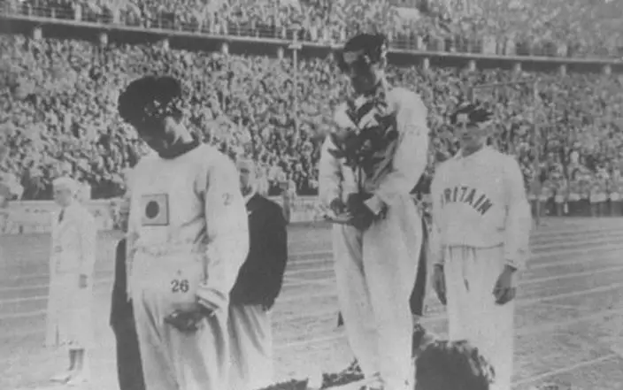 衝過終點的孫基禎,脫下了腳上的足袋,他的臉上似乎沒有太多的喜悅。也許對他來說,奪冠的瞬間,也意味著為「國」爭光的夢想破滅,因為他的金牌將屬於日本,而並非自己的祖國韓國。