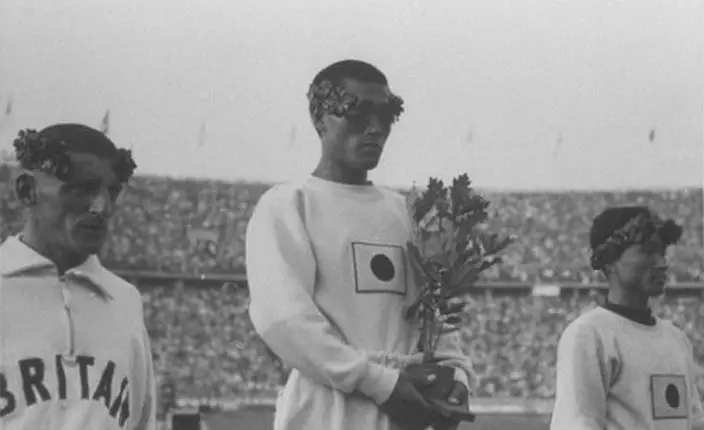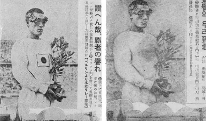 當時的韓國處於日本佔領時期,孫基禎代表的並非韓國隊而是日本隊,他在大會上使用的姓名也是日本名字,就連胸前佩帶的國旗也不是韓國的國旗,而是日本的日章旗。在頒獎儀式上,當廣場中奏響日本國歌時,他與他的同胞南昇龍一樣深深地低下了頭,並用一盆月桂樹遮住了胸前的日之丸標識,而南昇龍因為沒有盆栽做獎品,手中空無一物的他將褲子幾乎提到了胸前,但依然沒能擋住那面日本國旗。