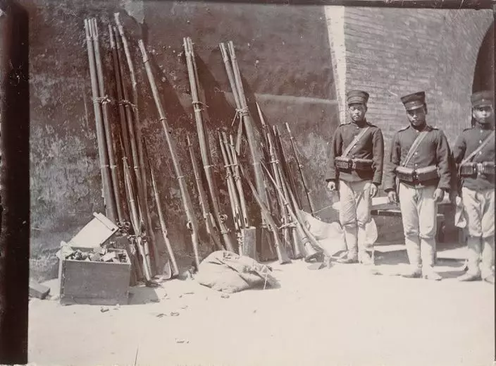八國聯軍之役繳獲義和團的抬槍 (網上圖片)