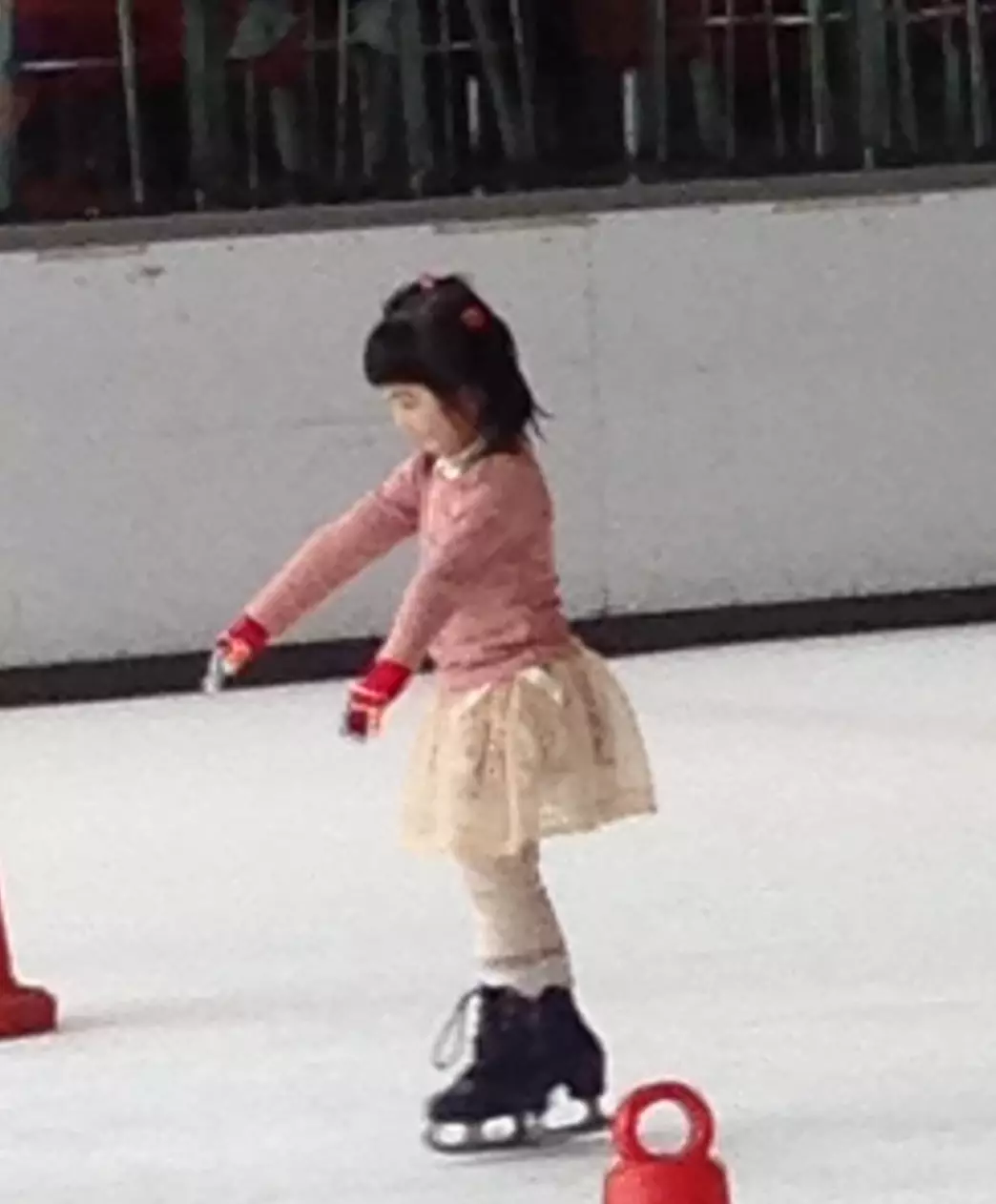 至於家姐,最近則開始學溜冰,學習在冰上「走路」。家姐一直嚷著要學溜冰,但我和丈夫對溜冰一曉不通,要我們陪她進入溜冰場,難度的確很高。而自己對上一次出沒溜冰場已是十多年前的事,當時還是扶著旁邊的欄杆「行冰」,但看見女兒有興趣,心裡雖然害怕,仍唯有硬著頭皮陪她入溜冰場一趟,最多一直緊扶欄杆。第一次和女兒一起學習新事物,一起克服障礙,那種感覺非常好,亦很難忘。但深知她跟著我「行冰」沒有前途,又見她有興趣,於是讓她參加了一堂體驗課。