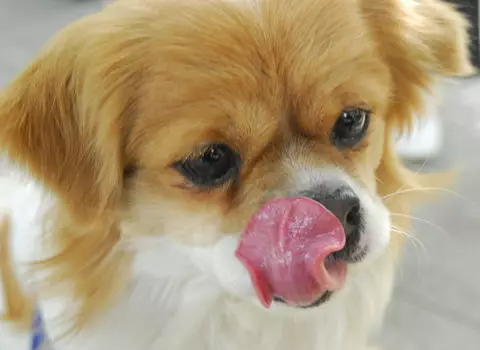 如果狗狗舌頭直直伸出來並馬上縮回去,這代表牠們感到不自在,這可能是因為牠們在跟不熟識或不喜歡的人相處,所以感到焦慮不安。