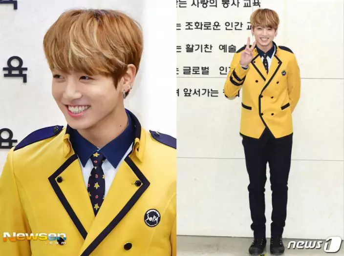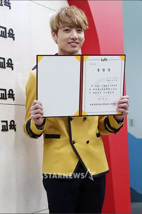 2013年6月出道的防彈少年團還是稚嫩的高中生,而當時的老幺田柾國還沒有步入高中學堂。2014年3月,在出道半年後田柾國正式成為了高中生,防彈少年團當時就全員出席田柾國的高中開學禮,為他送上祝福。三年後的今天,他正式從高中學校畢業,人氣已不容小覷,成員哥哥們也放下繁忙的行程,前來祝賀,可見成員們之間感情深厚。
