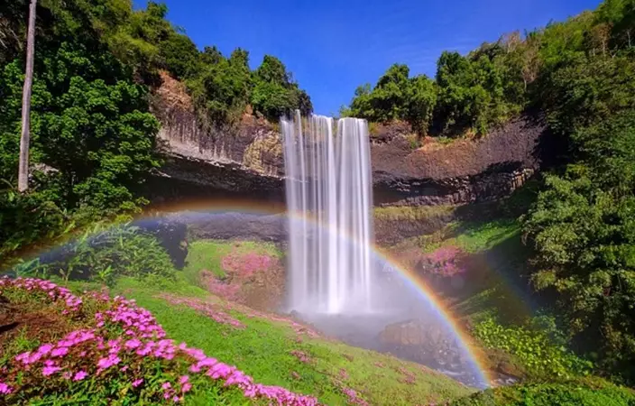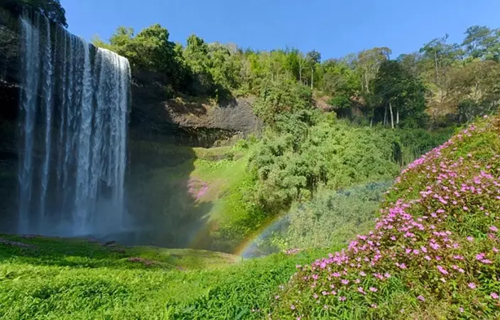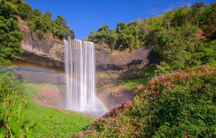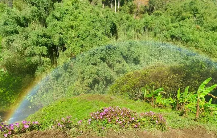 50歲的班路(Choochat Banlue)早前到寮國占巴塞省的帕克松旅遊,他在當地山谷中發現了雙道彩虹的奇景,即時讓他驚呆了。