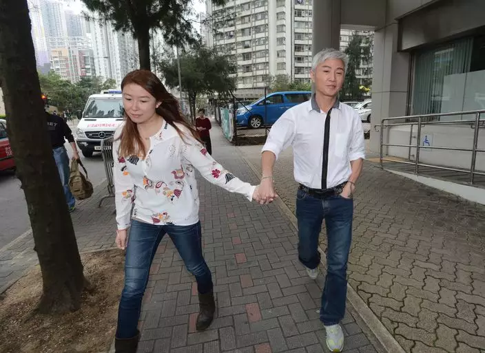 周啟生在藝人胡楓陪同下到法庭聽判決