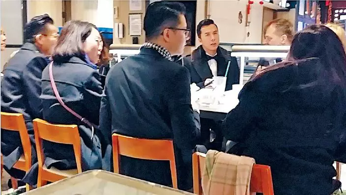 當晚約十一時,甄子丹一行約十二人,浩浩蕩蕩去到中環一間茶記。由於着得好隆重,加上子丹夫婦有多人簇擁包圍,客人見到他們「突襲」,都顯得好雀躍。店員便安排他們一行人坐二樓,他們點了地道的粉麵、咖啡奶茶及多士等,讓外籍好友歎美食。
