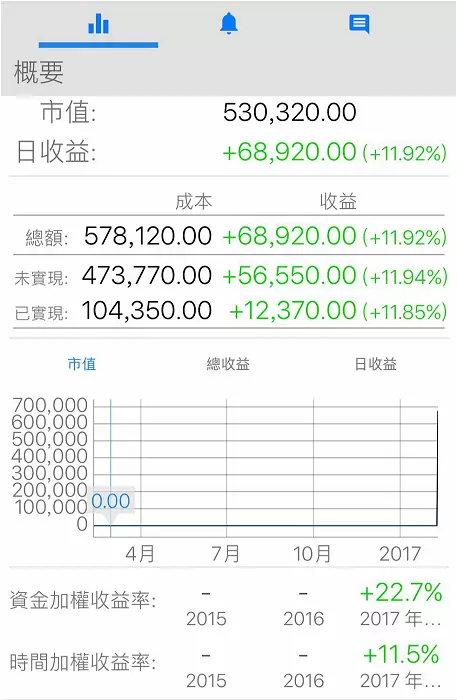 簡單總結,100萬的10注中,曾投資6注,有1注中航科工已平倉,尚餘5注,3注是中國海外,另外兩注是越秀房產和匯控。按已投資的60萬計,帳面利潤6.9萬元,帳面回報11.9%,若以100萬元計,有6.9%回報(現在有50萬現金未投資)。