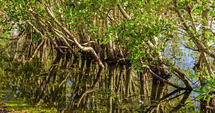紅樹林生態價值高,民署由九九年開始移植、種植紅樹,近年續向蓮花大橋海岸南北兩面擴張,該處有近三公里長的海岸。經過多年努力,於沿岸石灘種植取得不錯效果,紅樹生長茁壯,面向澳大橫琴校區的海岸邊的紅樹,最高達兩米,吸引不少鷺鳥棲息。隨着路氹沿岸紅樹林的生成,有人發現龍環葡韻的鷺鳥、林雀鳥有所減少。梁冠峰坦言,近年龍環葡韻周邊發展、建設較多,外來滋擾無可避免地增加,不過沿岸紅樹林帶進一步生長,良禽擇木而棲,鷺鳥會有較佳的選擇。