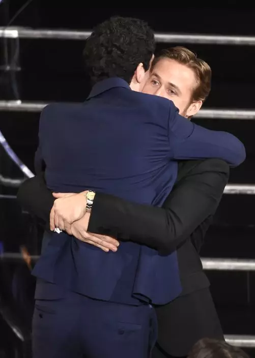《星聲》男主角賴恩高斯寧送上擁抱(AP圖片)