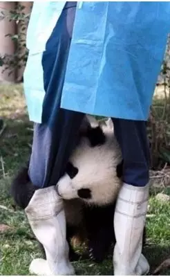 萌爆的抱腿短片中所見,黐身熊貓寶寶「奇一」無論被抱到多遠,都設法爬回正在打掃園子的陳波身旁,緊抱他的腿部,一副難捨難離的模樣。