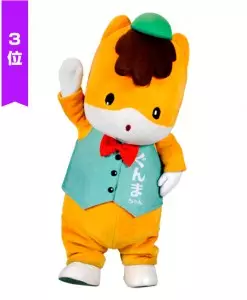 第二名的形象與出身就大不同!他是代表靜岡縣濱松市、鼎鼎大名的德川家康(出世大名家康くん)、第三名則是代表群馬縣的小馬。