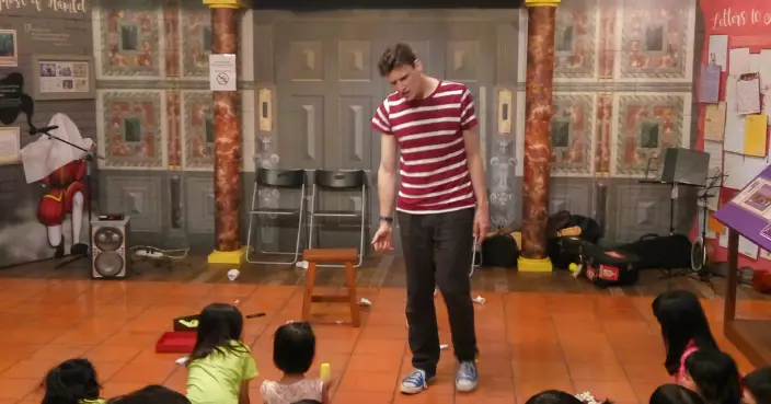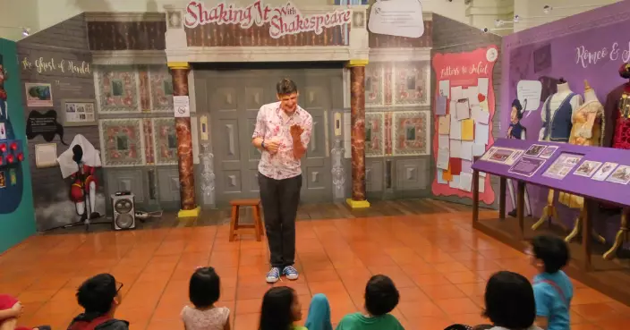 這天剛好是活動日,館方請來了英國的Jack Murray,以講故事的形式演繹莎士比亞的名作《第十二夜》和《亨利五世》,Jack 是倫敦 Shakespeare's Globe的演員和教育工作者,他在活動上分飾多角,既是說故事的人,又扮演故事中的不同人物,帶領小朋友穿越時空隧道,認識這些經典名著。