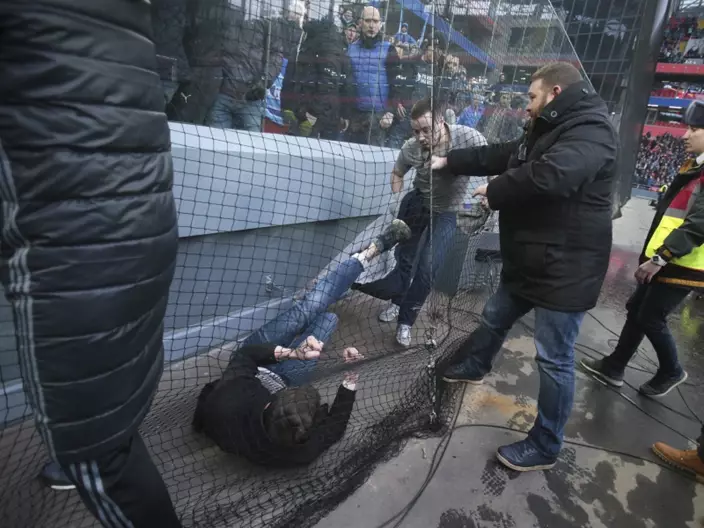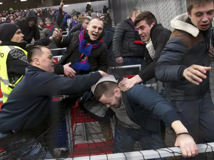 俄羅斯球迷大打出手時有發生,上星期舉行的俄羅斯足球超級聯賽,莫斯科中央陸軍與聖彼得堡澤尼特雙方球迷在場上「交戰」。