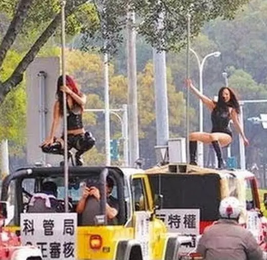 台灣名媛王瑄在前日清晨上班高峰時,帶領三名女郎,