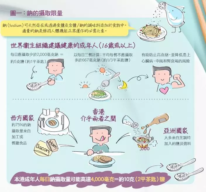 另外,研究指出醬汁是影響食物鈉含量的重要元素,以叉燒飯為例,「走汁」可令一碟叉燒飯的鈉含量減少約26%至56%,消費者減少添加和進食醬汁的習慣,能有效減低鈉的攝取量。