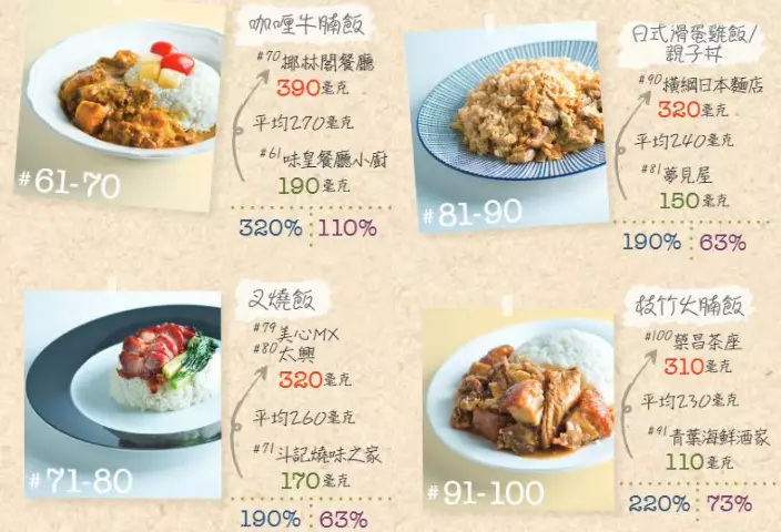 至於枝竹火腩飯成為「健康之選」,平均鈉含量為10種碟頭粉麵飯中最低,每100克飯,只含鈉230毫克,荃灣路德圍的青葉海鮮酒家更低至110毫克,視為「低鈉」。