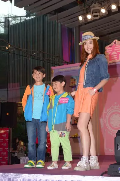歐陽妙芝與兩個囝囝方玉丞(Achille)和方玉亨(Attila)在時裝騷擔任模特兒演繹兩款新裝。