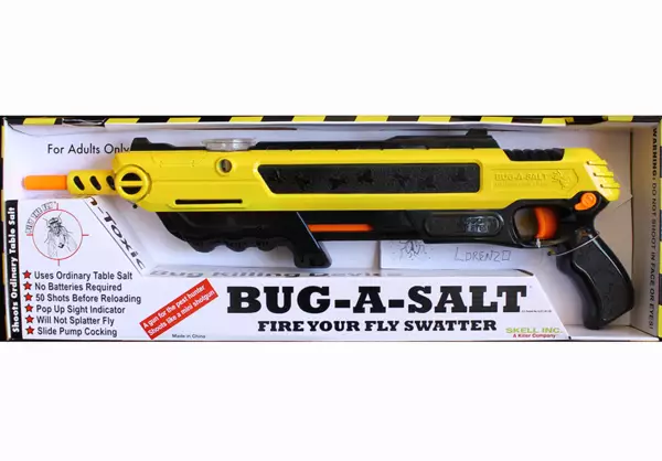 這支烏蠅槍叫BUG-A-SALT,由美國洛杉磯中年男子Lorenzo Maggiore發明。