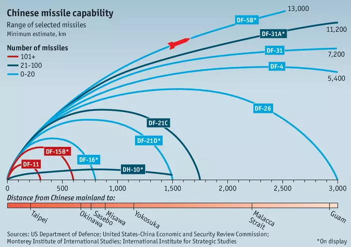 東風系列導彈射程範圍(網上圖片)