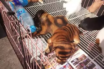 外表似「蜜蜂」、又似「老虎」,不少人都被狗販手上的「新品」狗仔吸引。但如果仔細觀察一下,就會發現這些狗仔大有問題。其實牠們只不過是普通的唐狗BB,狗狗身上條紋狀是染上去的,一般價格都在人民幣500元以內,對於新手或者是不了解狗的心來說就很容易上當受騙。