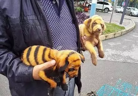 內地的街頭不時有狗販拿著一些沒見過的「新品種」狗BB,說是罕見的「蜜蜂犬」或者是「虎皮犬」,又因為價錢便宜,吸引不少人買回家飼養。但其實這些狗仔並非「罕見品種」而是經過染色處理,用來騙人的。