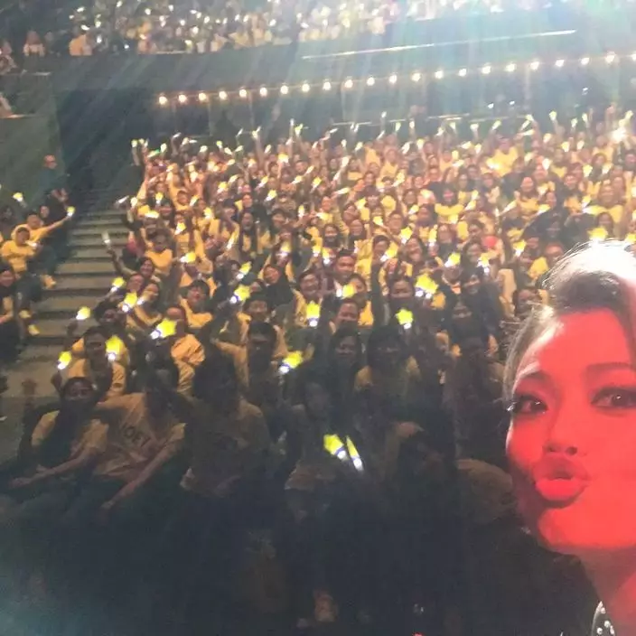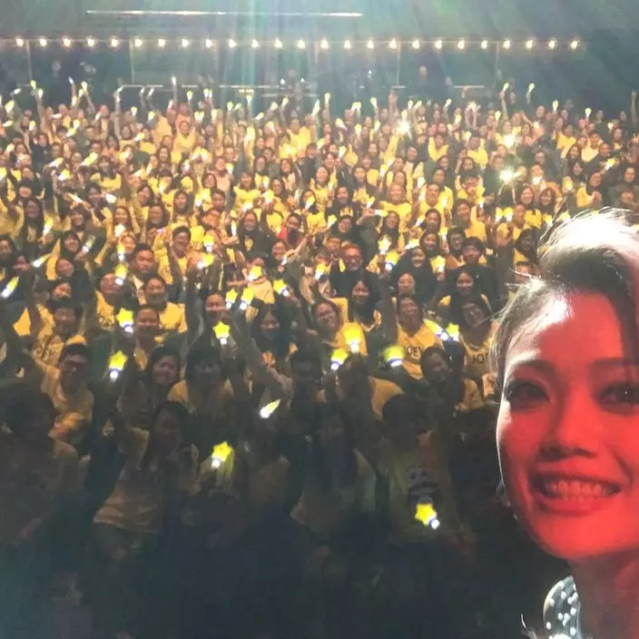 忍不住分享開心時刻的Joey,搞笑指自己「走法律罅」,因大會已經告誡不能率先曝光舞台設計,所以她換個角度,在台上與台下歌迷玩自拍,更留言:「今晚頭場,歌迷會包場,大家high high high!首首sidetrack 我問你地(哋)飽唔飽?不過又真係可以首首大合唱!集(楝)篤笑同演唱會於一身,笑爆肚!大家好錫我,個個揸住花花電筒,我差點以為自己係GD唔GD!大會話暫時不要po台面嘢,咁台下觀眾po得啦卦(掛)無犯規掛」。