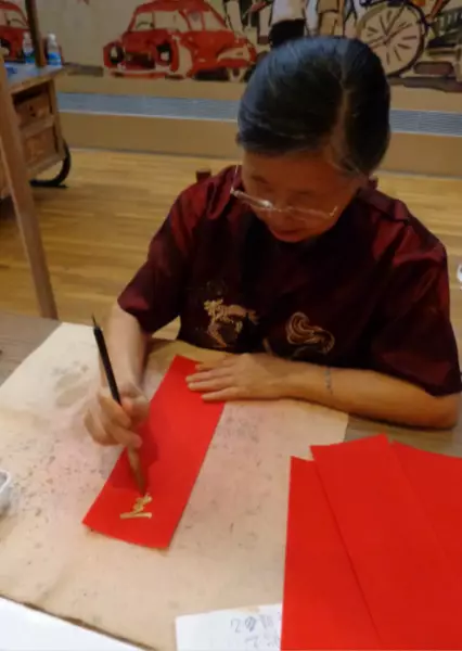 當天攤位很多,既有剪紙、介紹舊玩具、與穿着懷舊服裝的模特兒合照的小攤,亦有一位老婆婆替大家寫揮春,但最有趣的是,原來老婆婆不懂中文,只是照抄一次就交給參觀者。