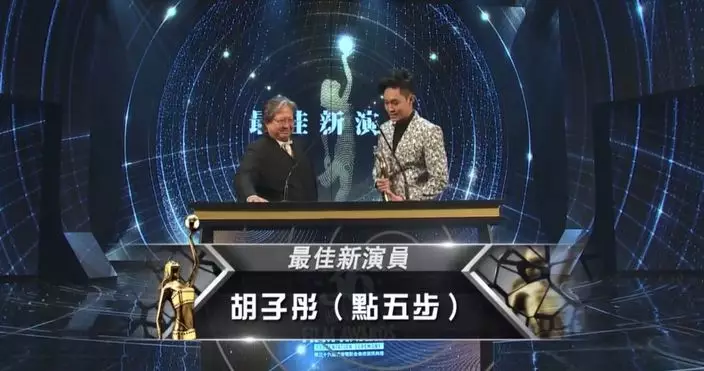 「第36屆香港金像獎」今晚於尖沙嘴文化中心舉行,胡子彤憑電影《點五步》勇奪最佳新演員。