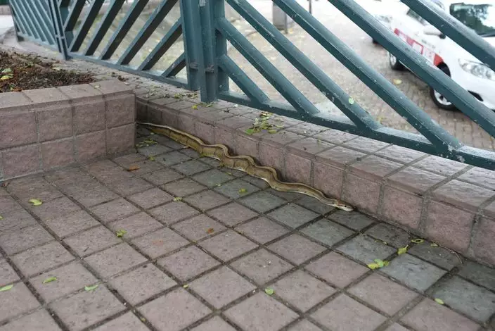 長沙灣九龍道公園路邊出現一條長約1.5米的雌性五花蛇。
