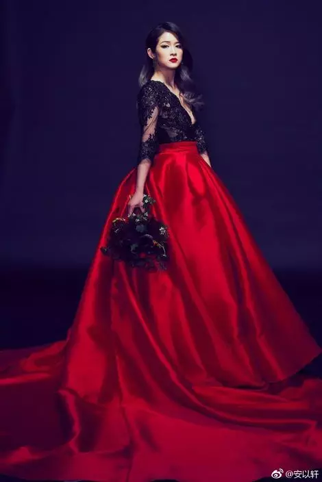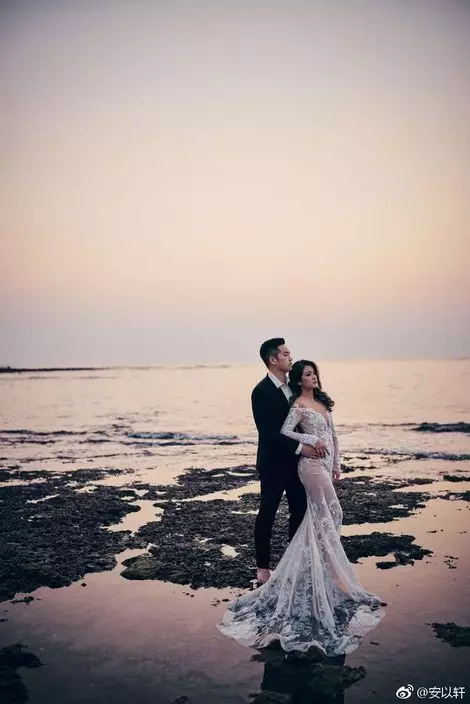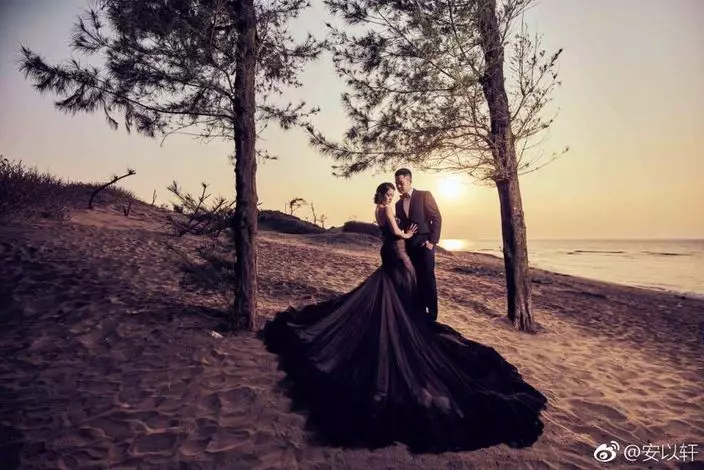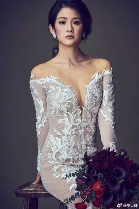 另外,安以軒又上載了向以丞的婚照,白色超Deep V半透明婚紗照,相當吸睛,即大膽又不失氣質,另兩套婚紗都是以深色為主,同樣是低胸設計,但多了一份霸氣。