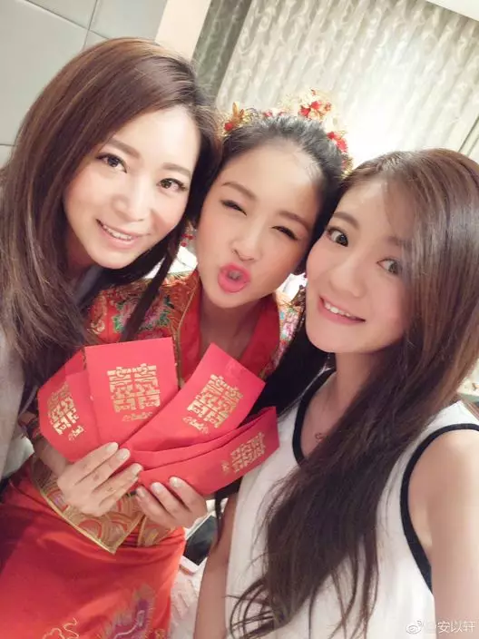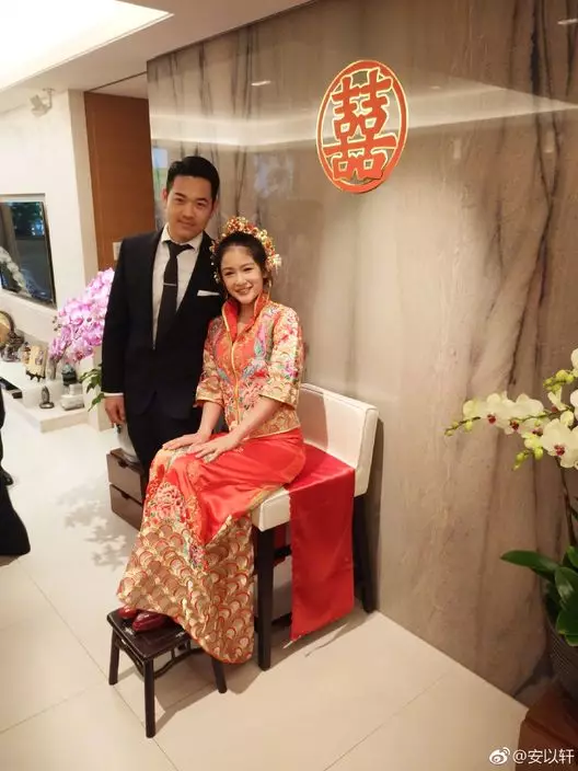 原本安以軒因工作中午要離開台灣,不能到場,但最後亦早起撥出半小時現身送上驚喜,並在微博留言:「這就是傳說中的『雙喜臨門』,今天的文定儀式太可愛了,咱們就是低調一下全出嫁,手牽手奔向幸福的生活,他等了妳那麼久~真愛,今天看見他充滿愛的眼神看著妳,好替妳開心。」