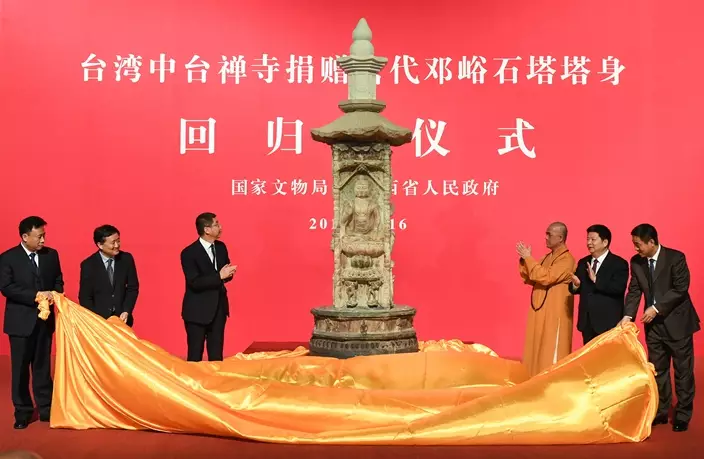 台灣中台禪寺捐贈唐代鄧峪石塔塔身回歸儀式在山西博物院舉行。大陸國家文物局副局長關強表示,這是留在兩岸民眾心間、載入兩岸文化交流史上的又一標誌性事件,有利於推動更多流失文物回歸祖國。