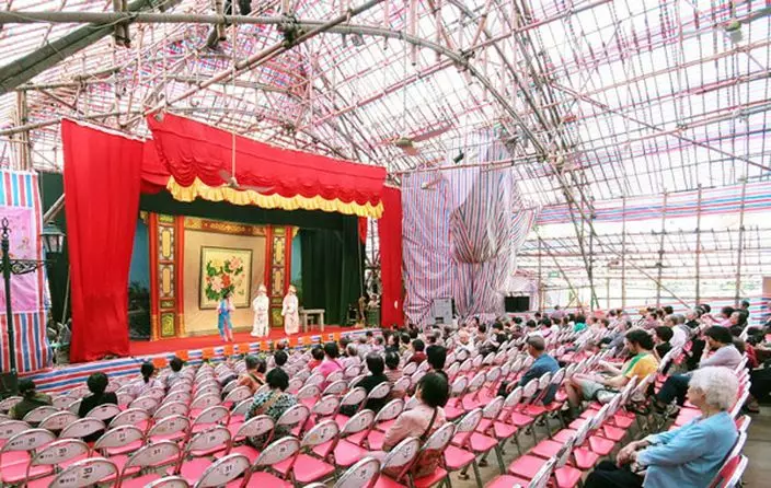 媽閣廟前地昨起一連 5天上演神功戲恭賀媽祖誕,現場設有 800多個座位,首天有 9成滿座,昨晚並設神功宴。