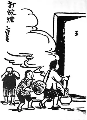 近代著名文學家漫畫家豐子愷畫過一幅《打蚊煙》,也是舊時農村常見的驅蚊方法。以前普羅大眾的民居極少有紗窗、紗門之類的防蚊設施;又限於經濟條件,百姓也捨不得買驅蚊劑之類。所以古老原始「打蚊煙」就大派用場:將半濕不乾的柴草點燃,再將明火滅掉令其產生煙霧。又或先點燃乾柴草,待火燃起一會,上面再覆蓋青草或濕柴,製造煙霧。