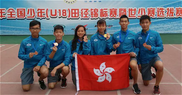 盛楚殷(右三)與隊友 香港業餘田徑總會圖片