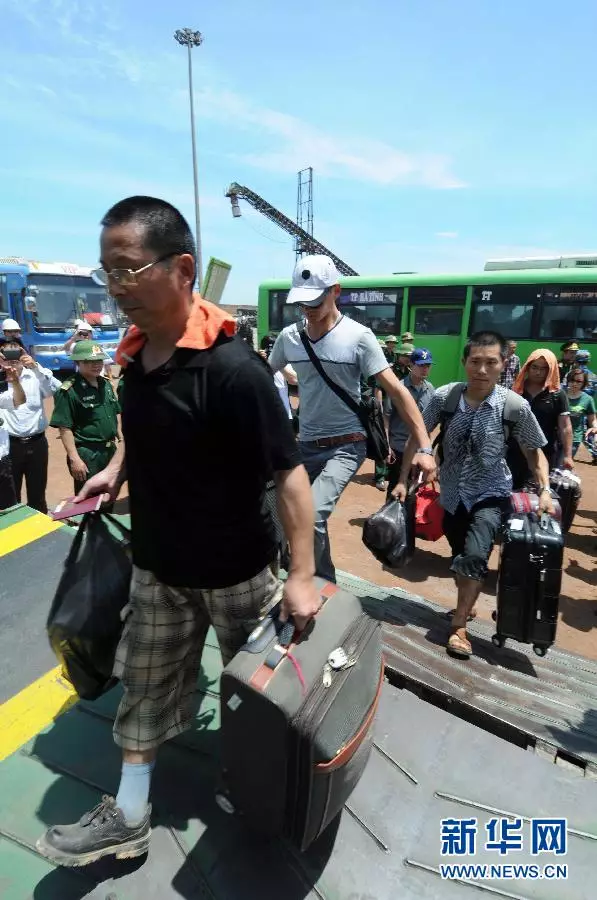中國政府派出的兩艘客輪昨晨抵達越南永安港,接走逾一千名中國僑民及工人。其餘三艘客輪也將陸續抵達,分批接返其餘人員。受排華騷亂影響,許多在越南的中國留學生陸續經廣西回國,有女留學生說,她的中國同學都很擔心。