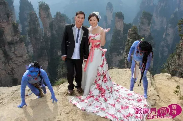 阿凡達除了可以在婚照入鏡,亦可以與遊客近距離接觸,亦可以體驗活捉,但請問紀念價值是張家界美景還是阿凡達呢?